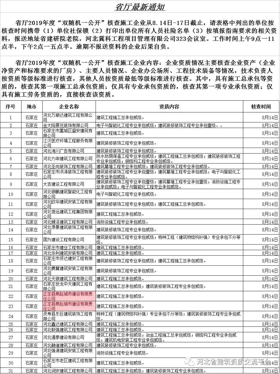 河北省住建廳雙隨機(jī)安全許可證檢查 ,請涉及到的單位帶上法人委托書、身份證復(fù)印件。攜帶資料按檢查表格準(zhǔn)備,檢查時間本周二到周五下午,報到地址市建筑業(yè)協(xié)會五樓會議室。地址建設(shè)大街35號付一號,市城管局南鄰。工作時上午9點一11點半,下午2點一五點半。