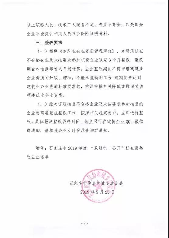 本次共核查了238家建筑業企業,其中,41家達到資質標準要求,197家不合格(含工商已注銷企業14家,申請注銷資質企業4家,未參加檢查企業44家)。